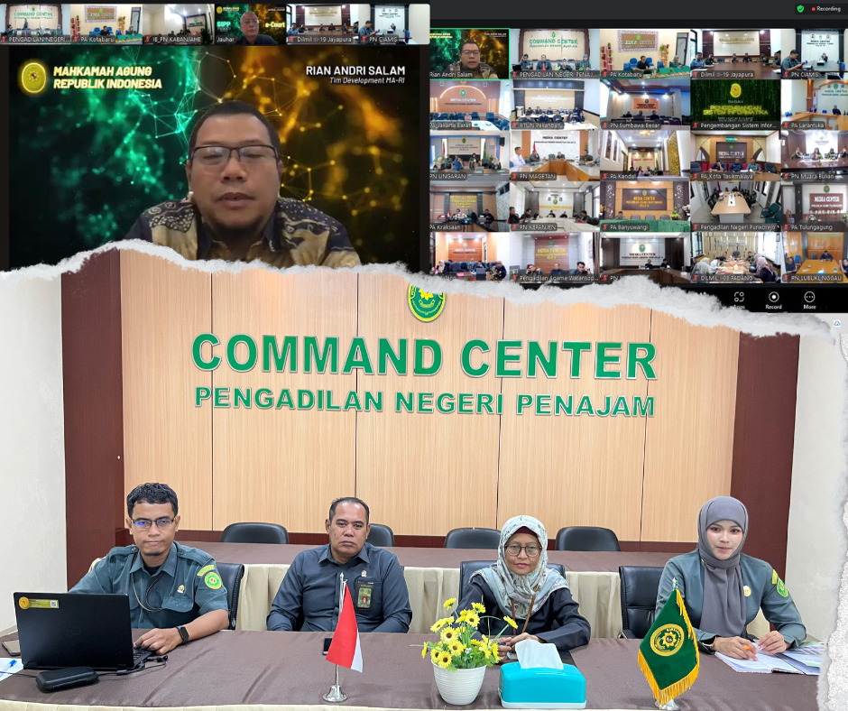Zoom Meeting Penyerahan Penghargaan Kinerja dan Layanan Terbaik di Lingkungan Peradilan Umum Tahun 2025, Penyerahan Sertifikat Mutu Pengadilan Unggul dan Tangguh (AMPUH), dan Pembinaan oleh Pimpinan Mahkamah Angung RI.