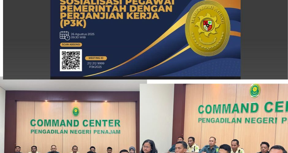 Senin, 1 September 2025 Ketua Pengadilan Negeri Penajam Ibu Hartati Ari Suryawati, S.H. melakukan Pelantikan dan Pengambilan Sumpah Jabatan Pegawai Pemerintah dengan Perjanjian Kerja (PPPK) Pengadilan Negeri Penajam bertempat di Ruang Sidang Utama Pengadilan Negeri Penajam, Kalimantan Timur.