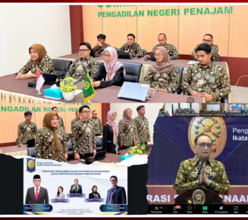 Kasubbag Perencanaan Teknologi dan Pelaporan Pengadilan Negeri Penajam bersama Operator GLP/Pelaporan Pengadilan Negeri Penajam mengikuti secara daring melalui Zoom Meeting Sosialisasi Fitur E-SAKIP pada Aplikasi BATARA ( Budgeting and Planing Application for Trasparency, Accuracy and Resource Alignment).